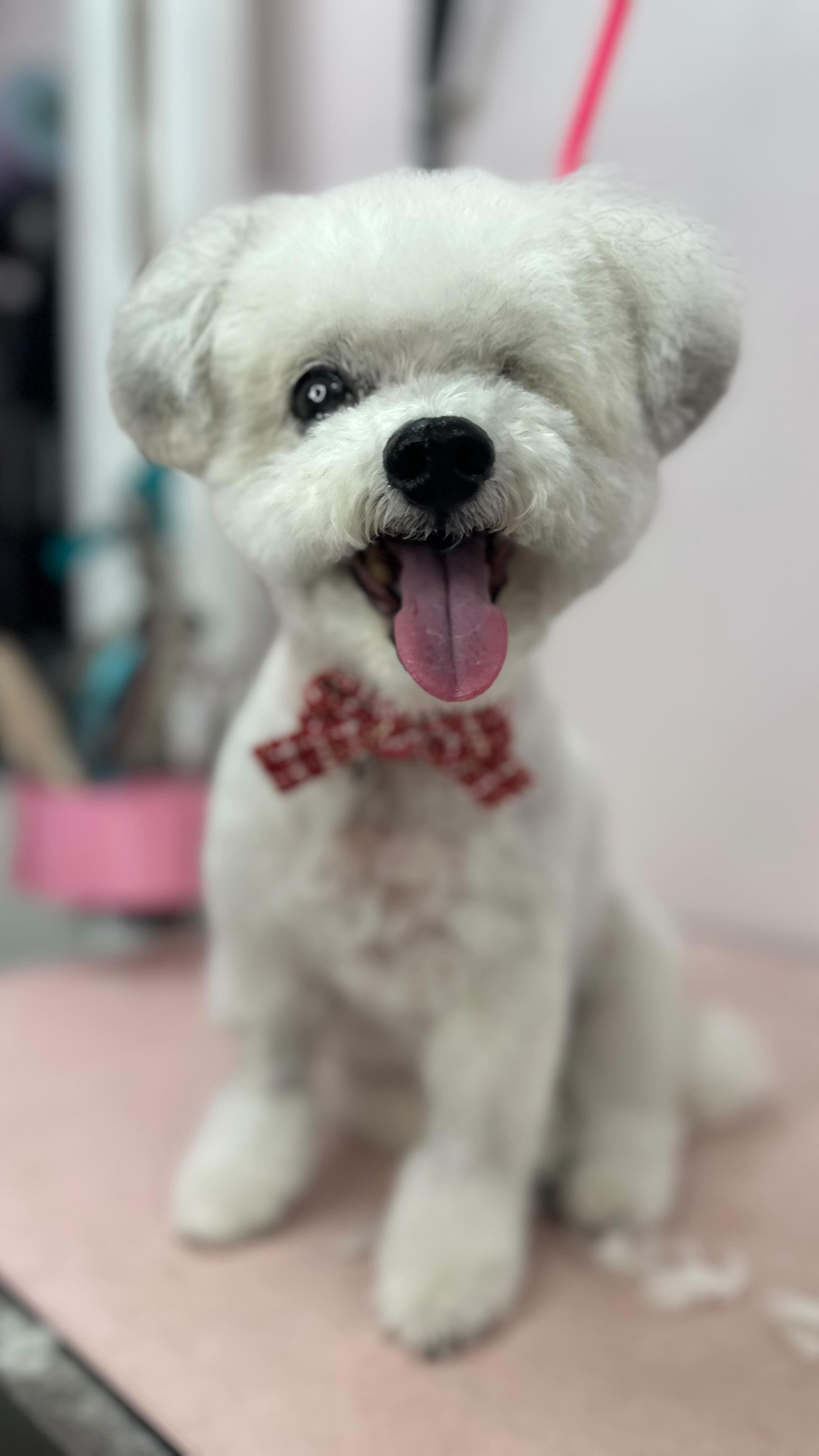 Our bath and cut package includes a custom full body hair cut, facial (blueberry or floral), foamy wash, ear cleaning, neck massages, sanitary tidy, mani/pedi nail trim, teeth brushing (with an irresistible flavor), hand fluff drying, and a choice of hair or neck accessory.