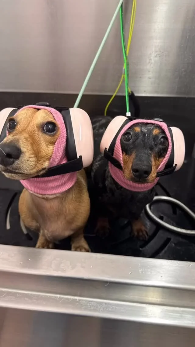 • Indulge your dog with our customizable grooming options from our Add-on Menu. Whether it's a pawdicure, ear plucking, or hair coloring, you can tailor the services to meet your pet's specific needs and preferences for an additional cost. *These are services added on to a grooming package. Not a standalone service.